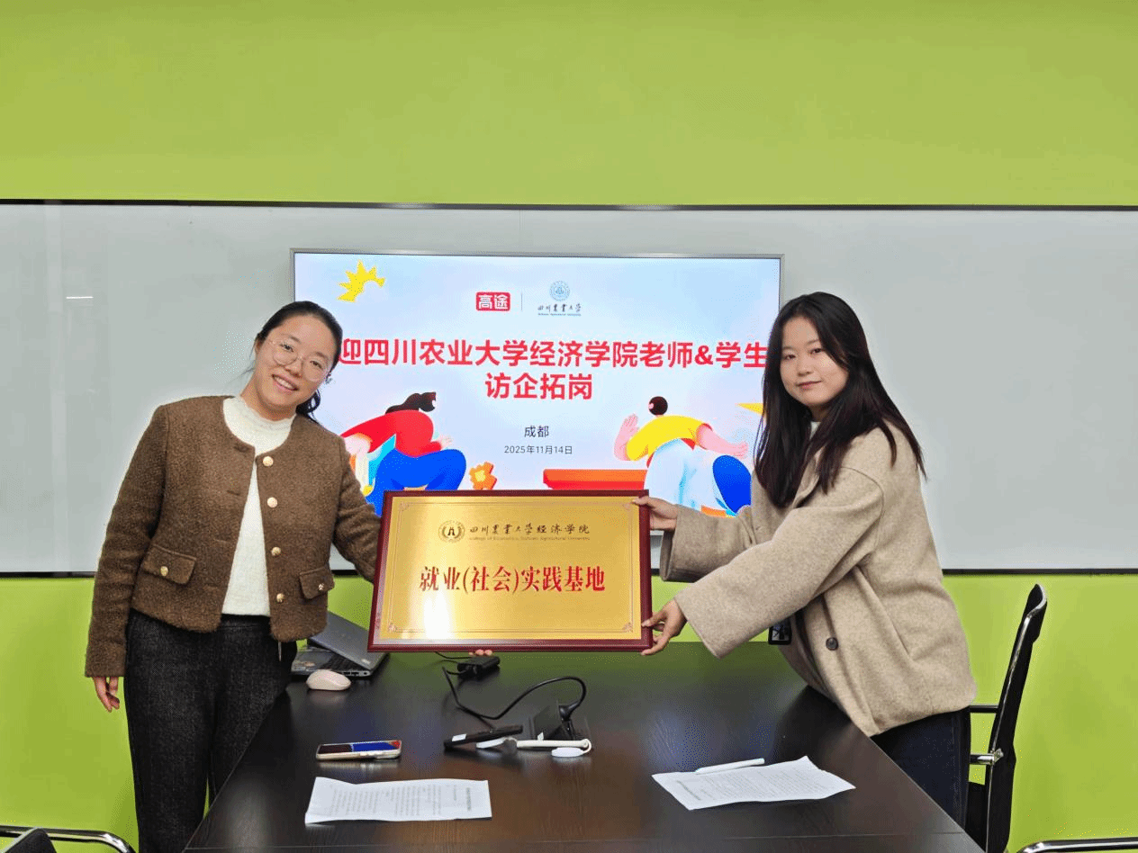 为拓宽学生职业视野、强化就业导向,扎实推进“四川农业大学‘职场面对面’就业育人品牌项目”。2025年11月14日,四川农业大学经济学院二十余名师生在党委办公室程远蝶老师的带领下,走进高途教育公司开展“名企职通车”参访活动。双方围绕“深化大学生就业育人,搭建学生与职场对话平台”展开深入交流,并成功签署院企合作协议,举行“四川农业大学经济学院就业(社会)实践基地”授牌仪式。