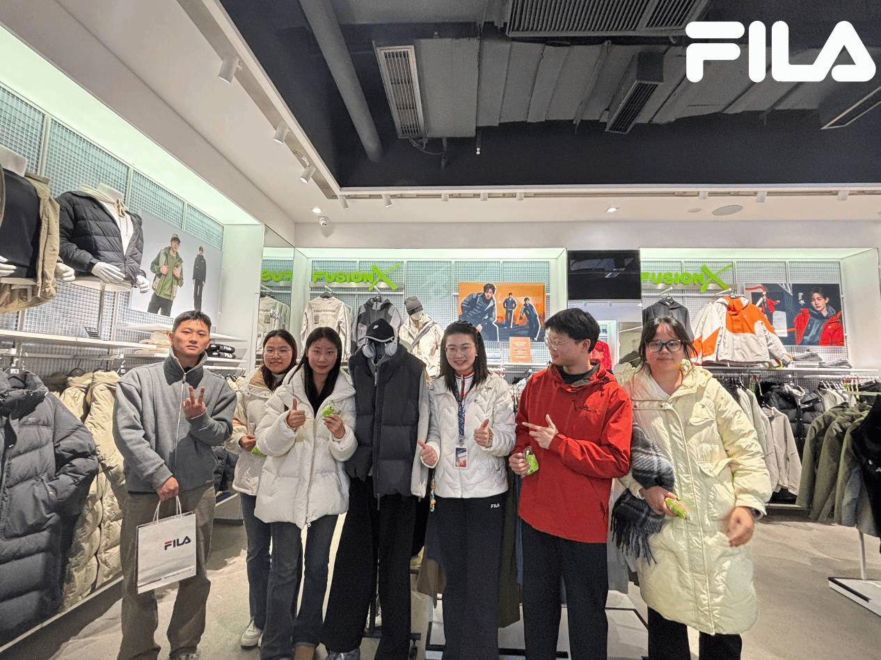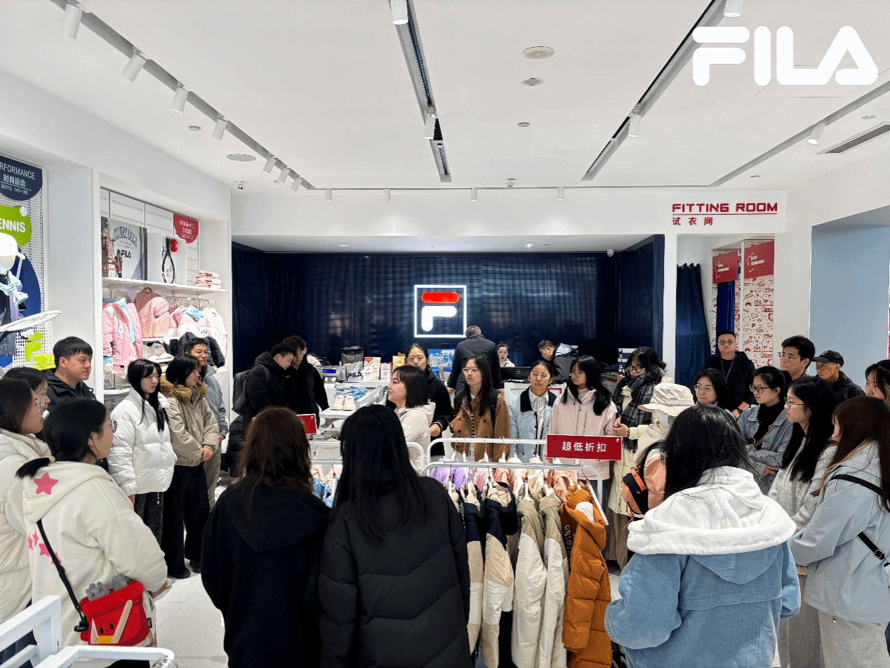在斐乐人事经理李萍的引导下,师生们深入商品陈列区、客户服务区及后台运营空间,系统了解高端运动品牌的门店管理流程与服务体系。通过观摩“从库存调度到消费者触达”的全链路运营,同学们对时尚零售业的标准化服务流程与场景化营销策略形成了直观认知,切身感受到新零售模式下“人、货、场”协同的效率与温度。