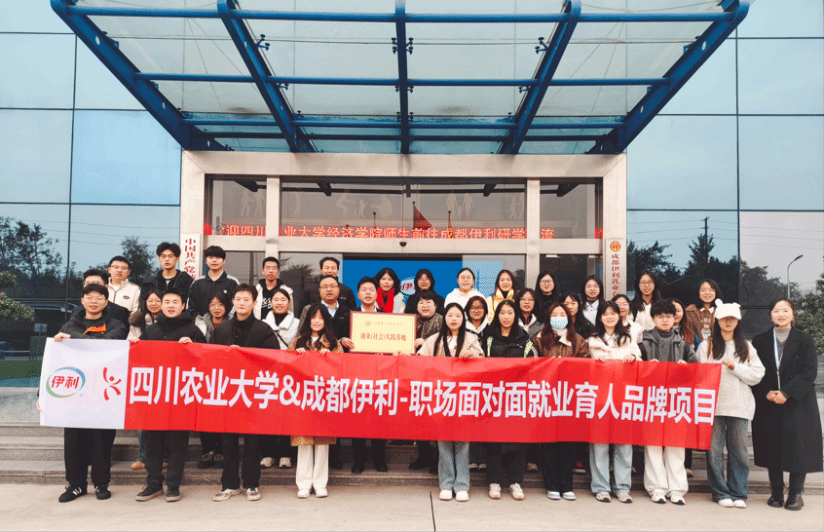 为扎实推进“四川农业大学‘职场面对面’就业育人品牌项目”,深化产教融合,精准对接行业人才需求,2025年11月22日,四川农业大学经济学院师生代表赴成都伊利乳业有限责任公司邛崃工厂开展“名企职通车”活动,并成功签署院企合作协议,共建就业(社会)实践基地,为学子搭建通往农牧行业龙头企业的坚实桥梁。