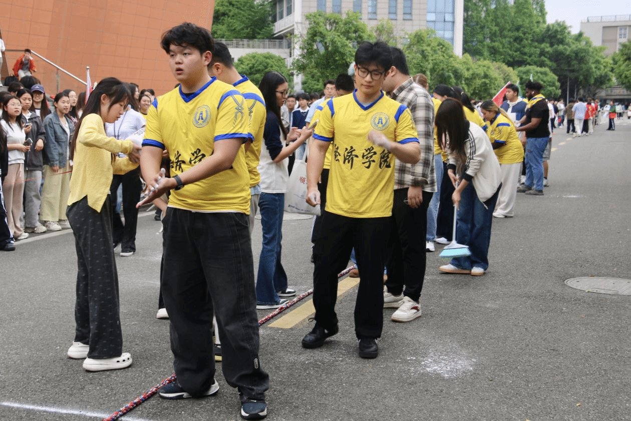 这场胜利,不仅是力量与技巧的胜利,更是团队精神与集体凝聚力的胜利。从赛前志愿者的细致服务,到赛中师生一心的并肩作战,再到中外学子无间的默契配合,经济学院用实际行动深刻诠释了“团结就是力量”的真谛。经济学院拔河队的卫冕之路,是一条用坚持、协作与信任铺就的巅峰之路,他们展现出的顽强拼搏、永不言败的体育精神,必将激励更多经院学子在未来的各个赛场上奋勇争先,续写辉煌!