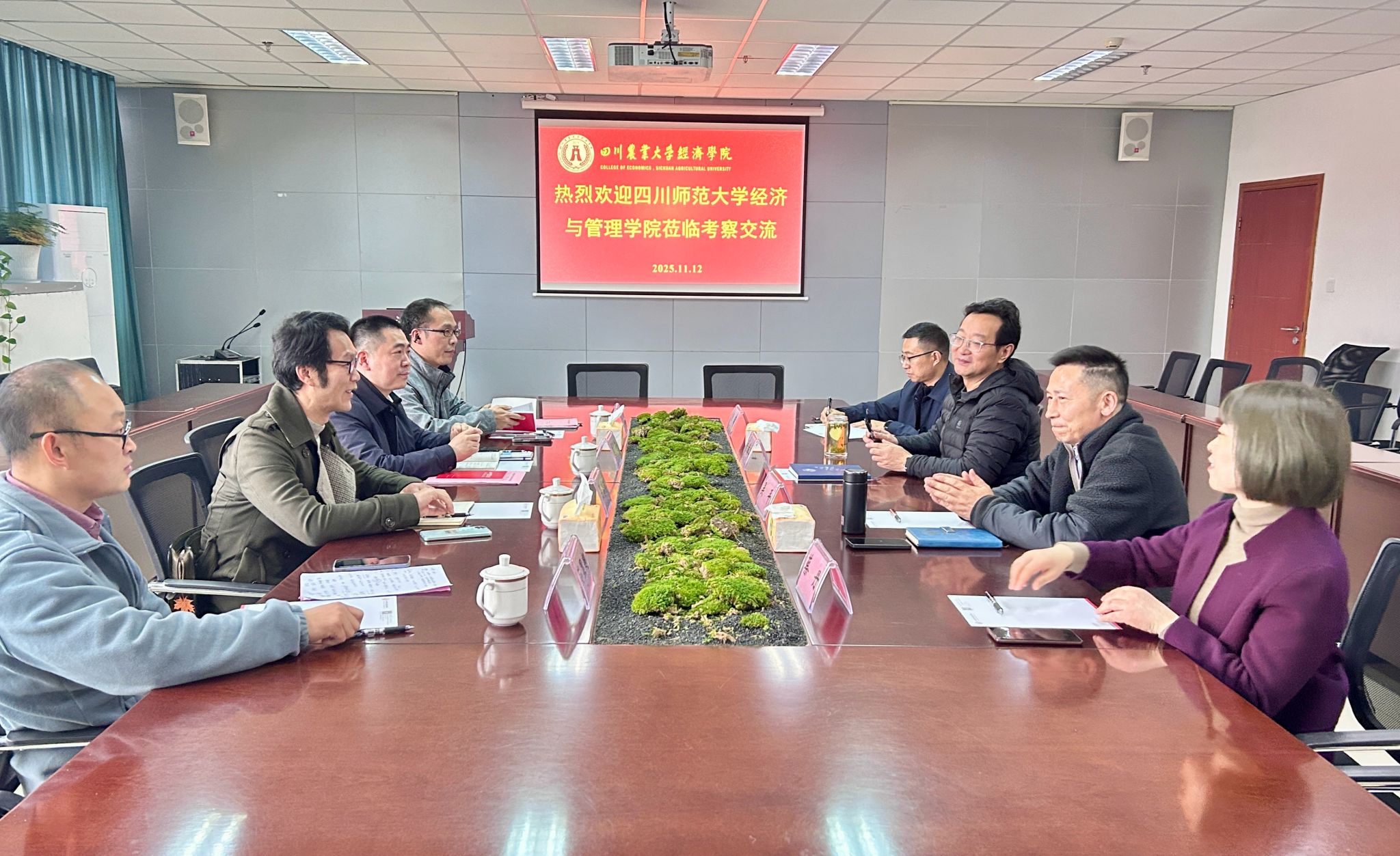 2025年11月12日,四川师范大学经济与管理学院院长郑涛率队来院交流。我院院长曾维忠,副院长吴平、杨浩及有关负责人热情接待并参与座谈。