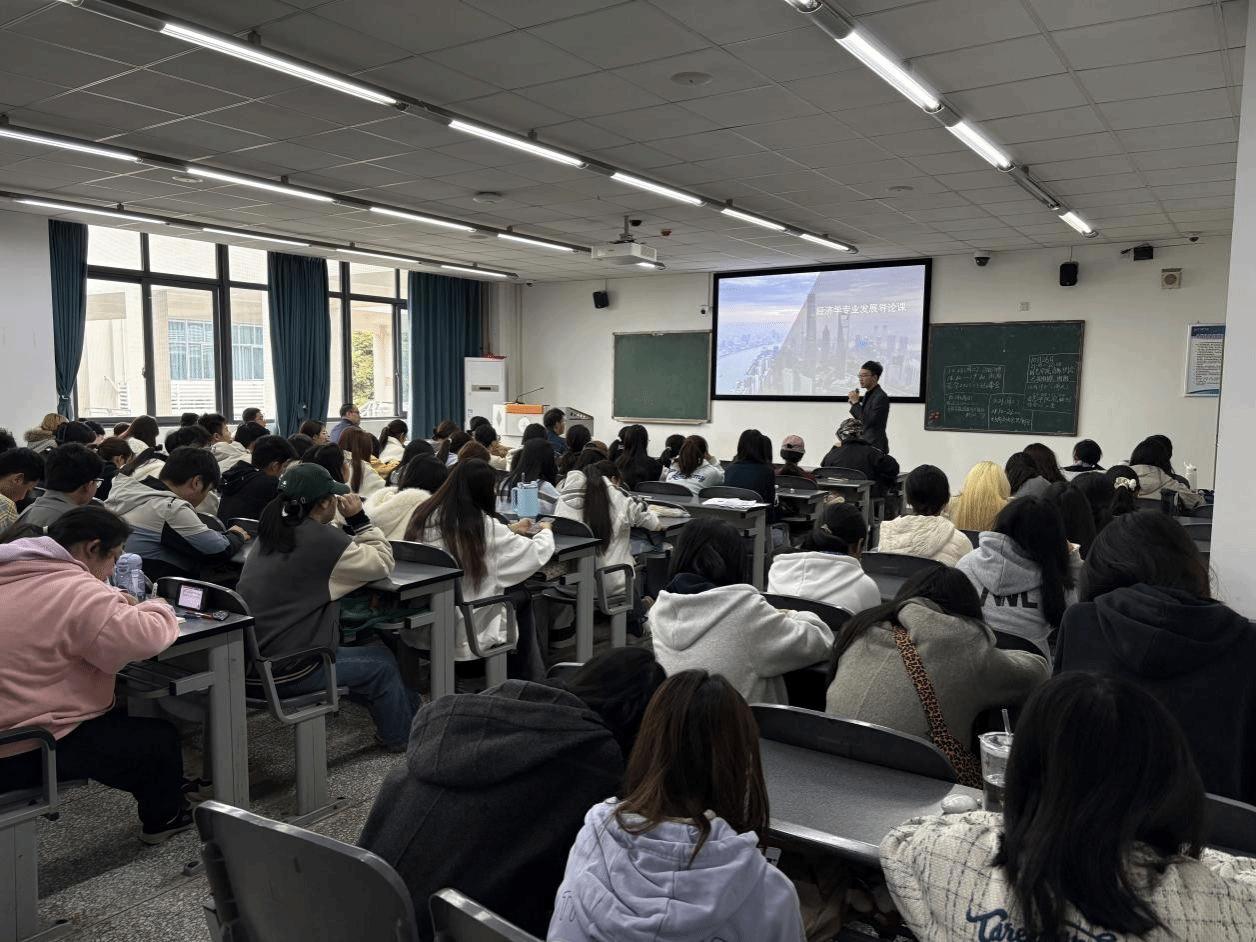 讲座后学生们意犹未尽,普遍感到收获颇丰。来自经济学202502班的张宇锋感慨:“这场讲座如同‘及时雨’,让我对大学生涯的学习重点和职业准备豁然开朗。”