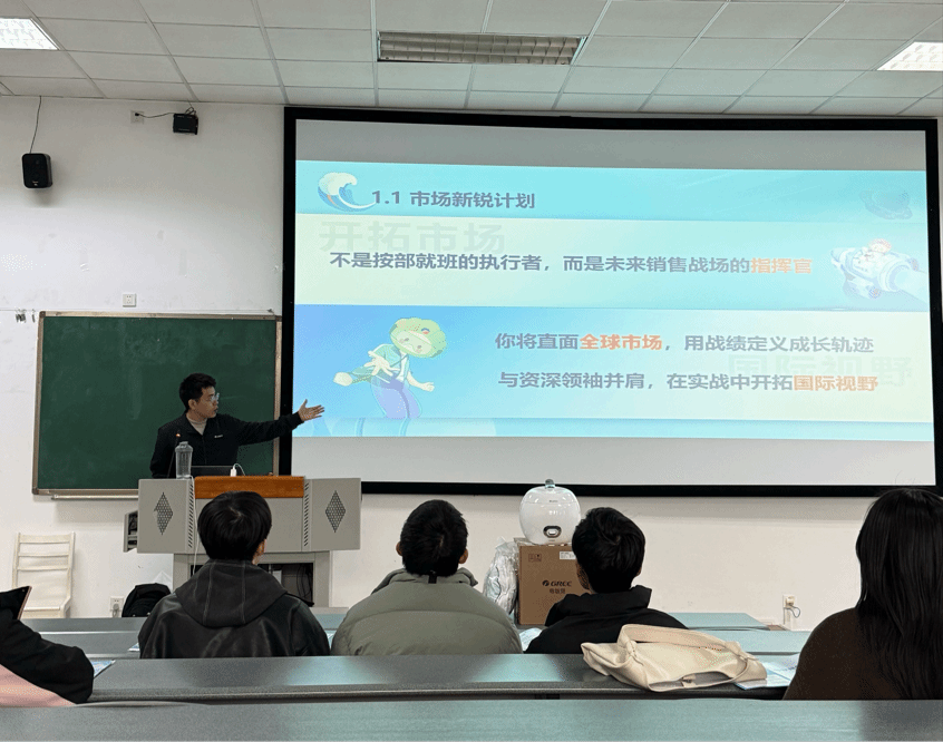 李经理重点解读了大学生培养“3-6-1”体系,从定制成长路径、资深导师带教、多元晋升通道到全面福利保障,系统梳理了从校园到职场的培养逻辑,清晰呈现了校园人向职场人转变的成长蓝图,帮助同学们建立对现代企业管理与市场运营的全面认知。