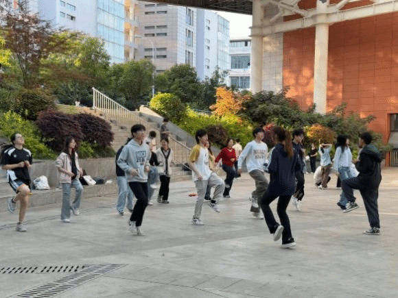 在华尔兹的训练场上,悠扬的旋律缓缓飘着,和窗外的阵阵花香绕在一起,格外温柔。春光里,同学们正沉心打磨着舞步细节。刚接触华尔兹时,大家难免拘谨,身姿僵硬,踏错节拍是常有的情况,甚至有人因紧张不小心踩到了队友的鞋尖,脸瞬的红到耳根。但没有人轻言放弃,教练手把手纠正姿态,一句句讲解卡点,队员们对着旋律逐拍校步伐,反复调整姿态,偶有出错,相视一笑,歇口气互相提醒要点后便迅速调整。反复打磨间,舞步日渐轻盈,动作日渐整齐。经院学子的温婉与少年人的朝气,都在这鲜活的青春画卷里展现得淋漓尽致。