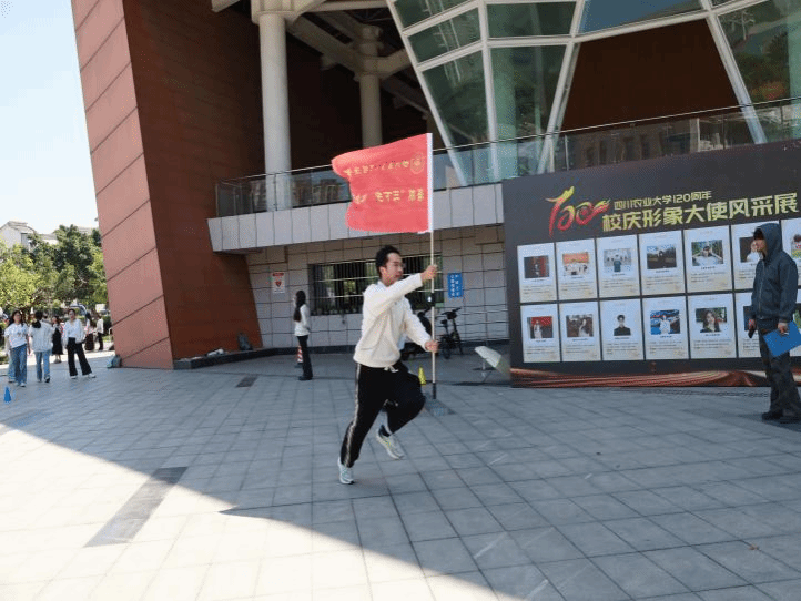 校旗迎面接力的跑道上,每位队员都格外认真,深知手中校旗承载着学院的荣誉与希望。训练初期,大家交接旗配合生疏,大家便一遍遍打磨奔跑与传递细节。渐渐地,配合愈发熟练,校旗在风中稳稳传递,每一次奔跑与交接,都藏着集体荣誉感与团队力量。