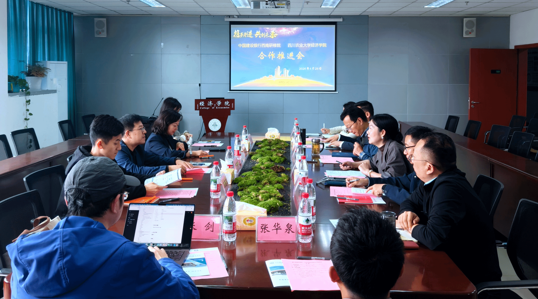 4月28日,经济学院与中国建设银行西南研修院产学研合作推进会在7-609会议室举行。学院院长曾维忠,副院长吴平、杨浩及相关系室负责人与建行西南研修院副院长许军平一行座谈。双方围绕产教融合、人才培养、课程共建、科研攻关、金融助农等核心议题深度对接、凝聚共识,共探产学研协同创新新路径。会议由学院党委书记刘思麟主持。