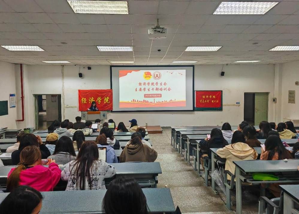10月24日,为进一步加强学生会骨干队伍建设,提升学生干部的服务意识、担当精神与学风建设能力,我院学生会主干培训会正式召开。本次培训会特邀学院党委办公室主任兼团委书记朱玉老师、学院党委办公室宋宸老师、学院党委办公室程远蝶老师出席,经济学院第十一届学生会全体主干参与。